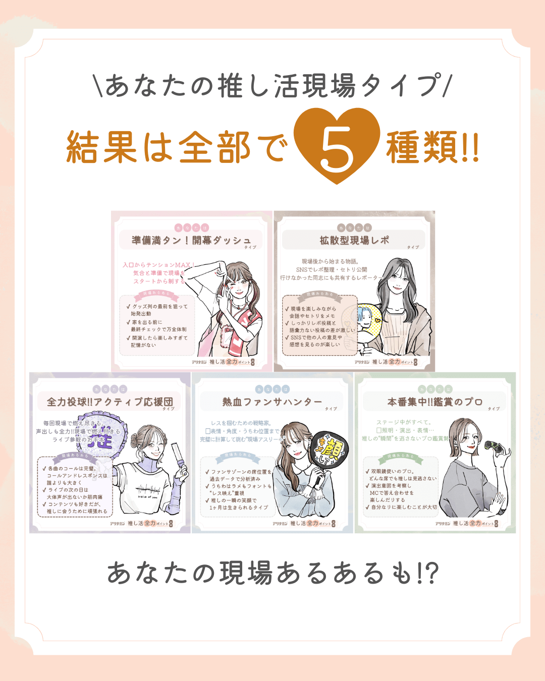 『推し活全力ポイント診断♡』の診断結果は全5タイプ♡