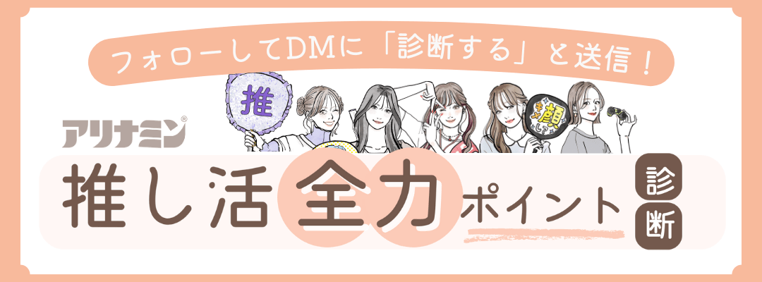 健康サイト(アリナミン製薬)の公式Instagram(@alinamin_kenko)で、あなたは現場でどのタイプ?『推し活全力ポイント診断♡』がスタート!