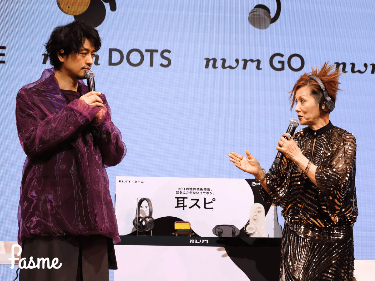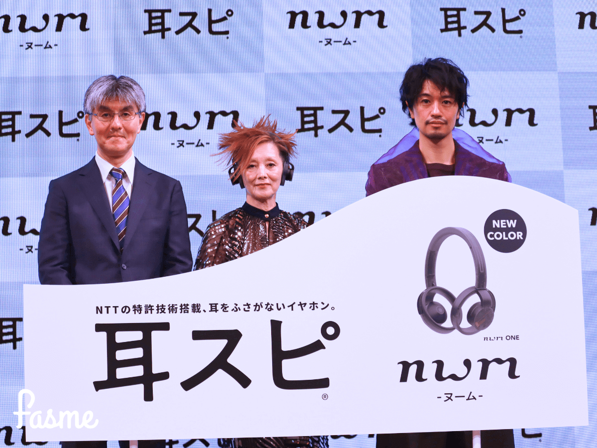 NTTソノリティが展開するオープンイヤー型オーバーヘッド耳スピーカー「nwm(ヌーム)」が、11月18日の“いいイヤホンの日”にあわせて新CM&新色発表会を開催。アンバサダーの斎藤工さん、そしてプライベートでも親交のある夏木マリさんがゲストとして登場し、会場は大いに盛り上がりました!!