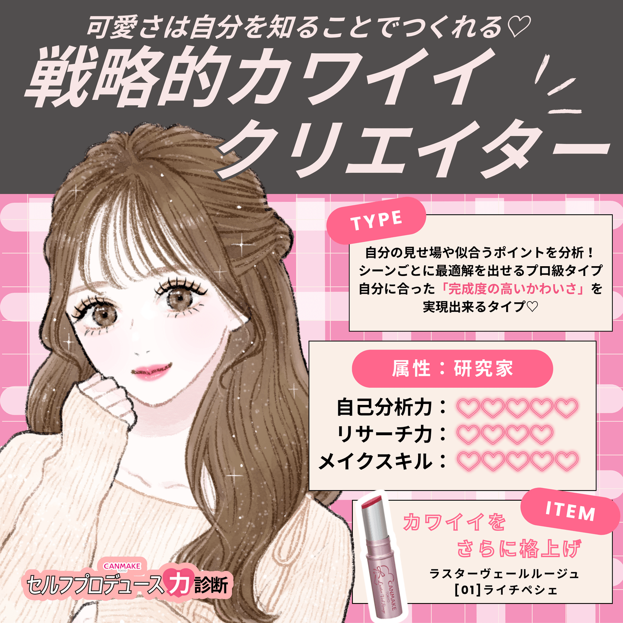 【キャンメイク セルフプロデュース力診断♡】あなたは…可愛さは自分を知ることでつくれる♡『戦略的カワイイクリエイタータイプ』