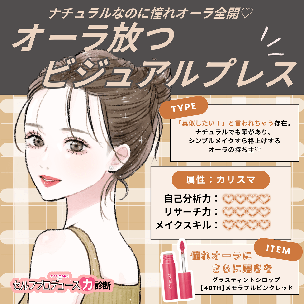 【キャンメイク セルフプロデュース力診断♡】あなたは…ナチュラルなのに憧れオーラ全開♡『オーラ放つビジュアルプレスタイプ』