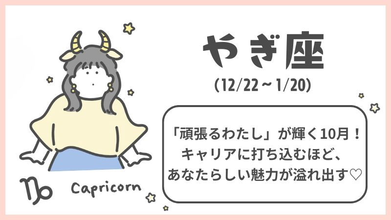 片思い中の人や出会いを探している人は、恋は少し休憩ムードに。 やぎ座さんはもともと「仕事が恋人」になりがちなタイプですが、今月はさらにその傾向が強まりそうです。でも、仕事に夢中になっている姿が周りにはとても魅力的に映るはず!