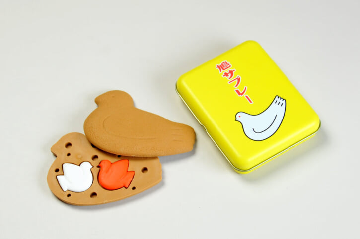 鳩サブレー型のパーツを開くと、中から小さな紅白の鳩の消しゴムが…♡