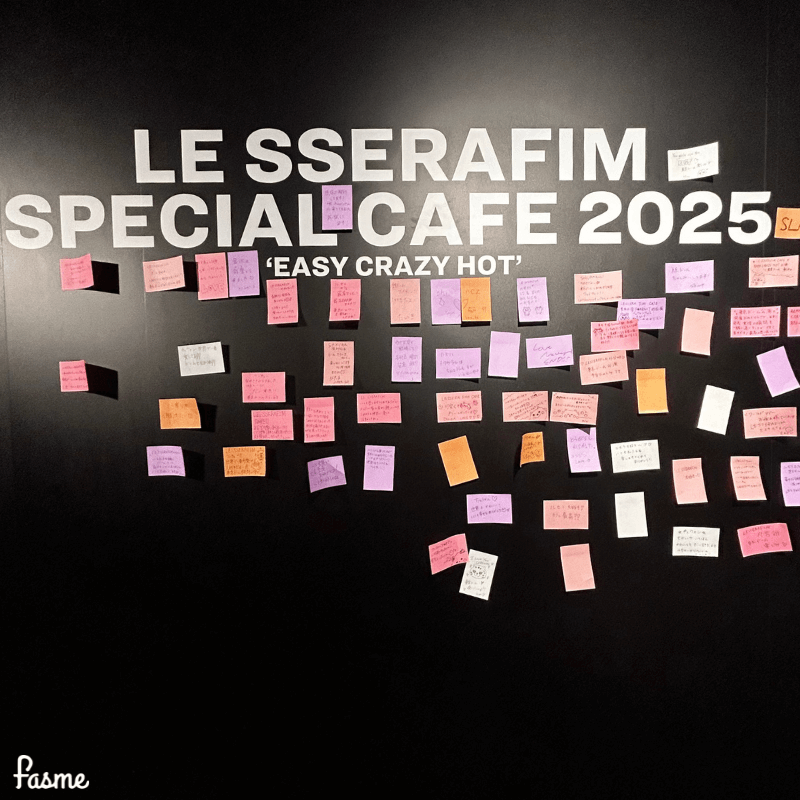 店内では、LE SSERAFIMへのメッセージやカフェでの思い出を綴るスペースも登場♡