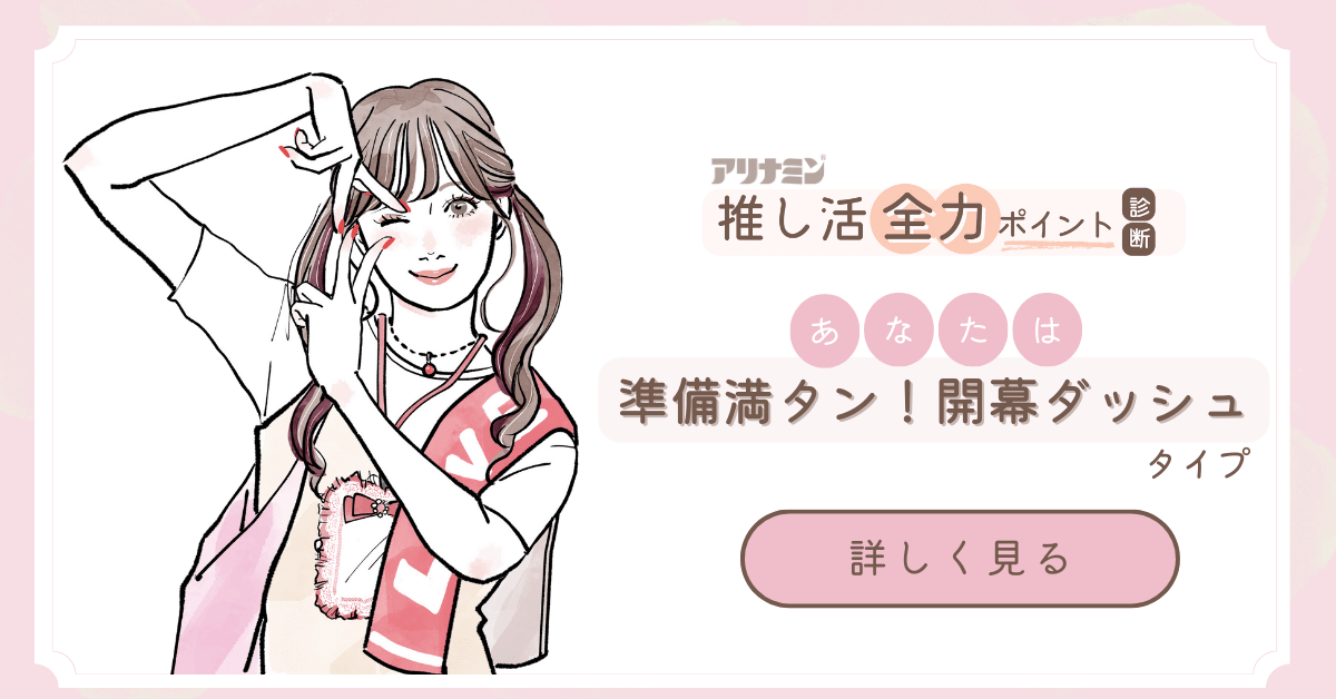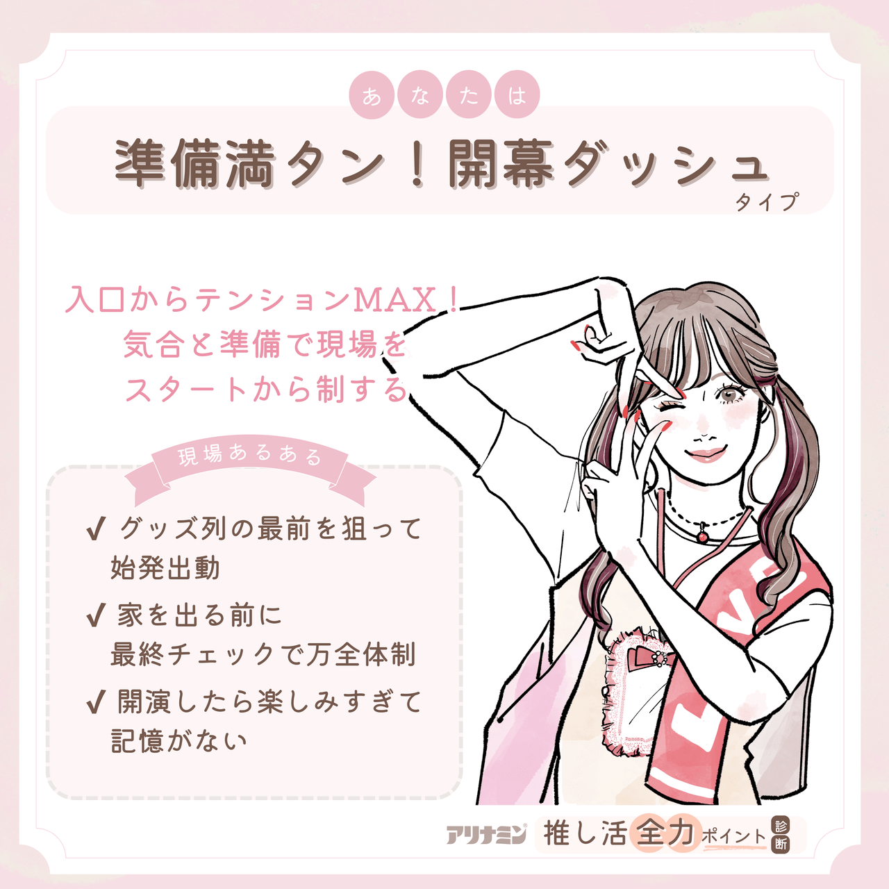 【あなたは現場でどのタイプ?推し活全力ポイント診断♡】あなたは…『準備満タン!開幕ダッシュタイプ』