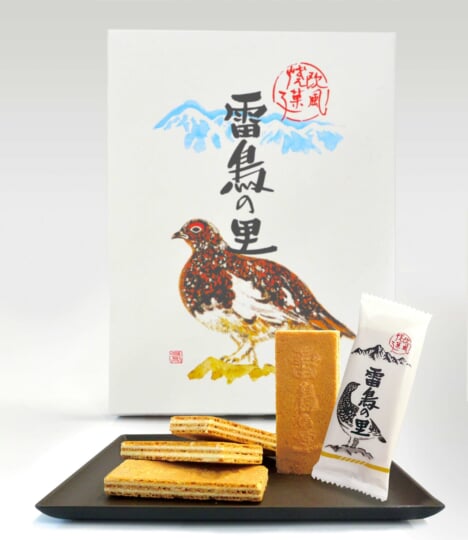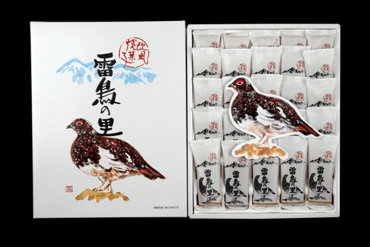 「氷河の昔からひっそりと山岳に暮らす雷鳥のように、誰からも愛されるお菓子でありたい」——そんな願いが込められた、レトロ感ただようデザインも魅力のひとつ◎