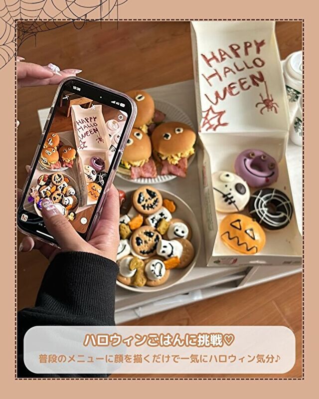 いつものハンバーガーやクッキーに顔を描くだけで、一気にハロウィン仕様に変身♪