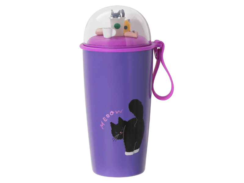 黒猫のドーム型リッドがポイント♡ラメ入りボディ&カラフルストローで写真映え抜群!