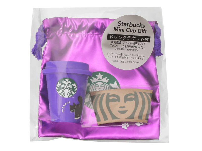 パープルカラー×黒猫のミニカップに、ドリンクチケット&メッセージスリーブ付き♡