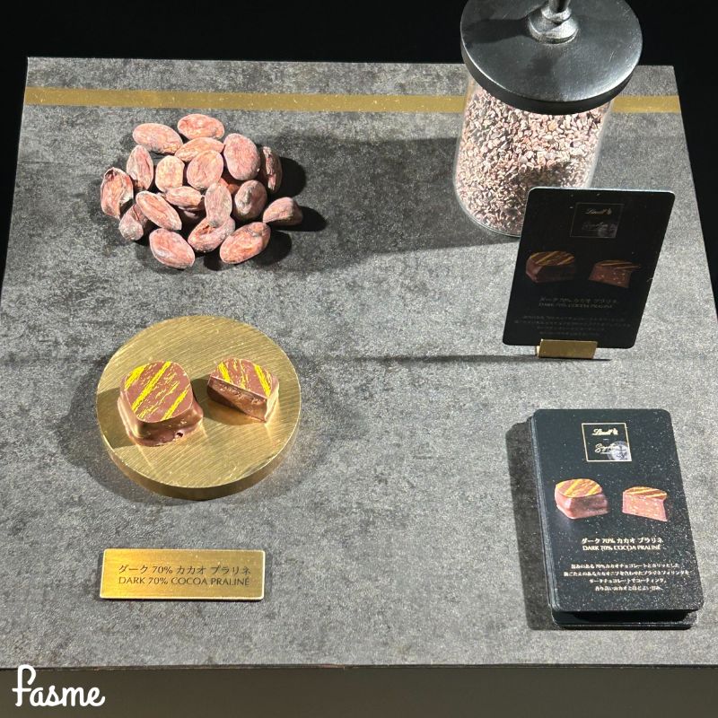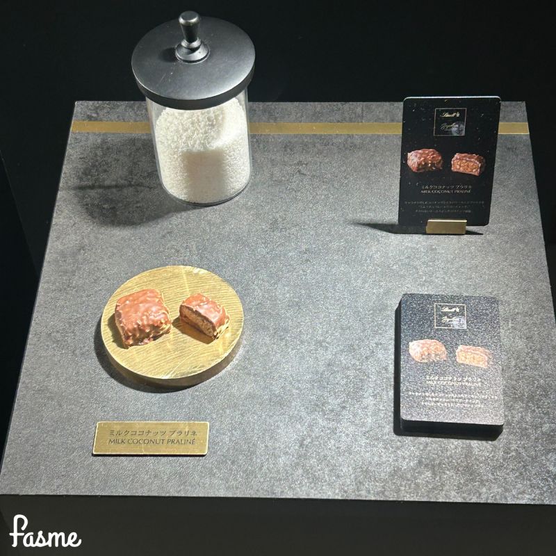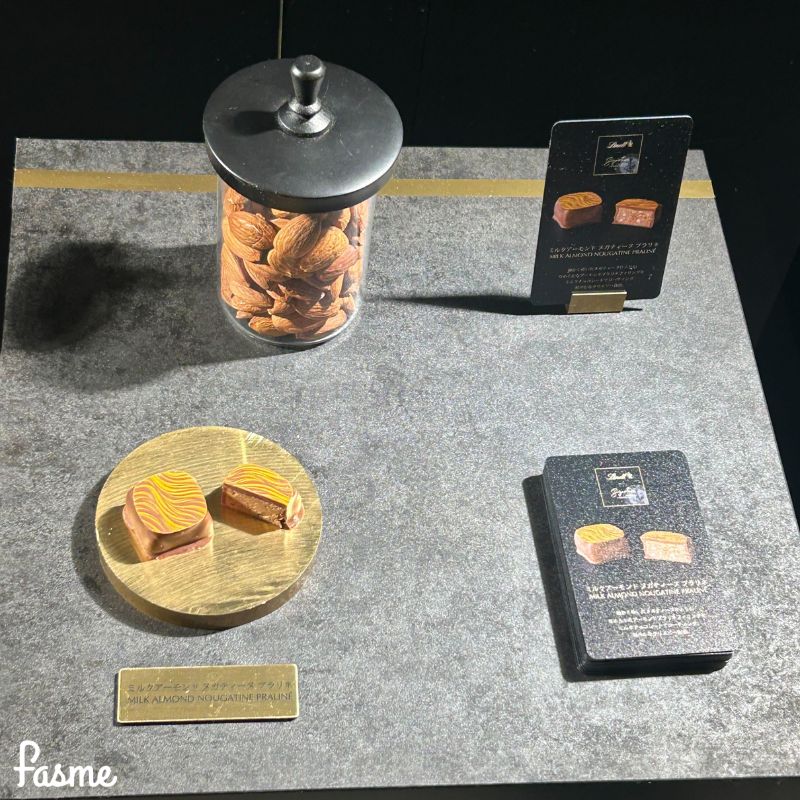 会場では、実際に『シグネチャープラリネ』全7種のうちの2種「ミルクティー プラリネ」「ダーク70%カカオ プラリネ」試食も実施。