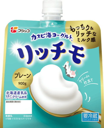 カスピ海乳酸菌(クレモリス菌FC株)を使った独自の発酵技術で、もっちりなめらか、なのにしっかりコクのある、今までにない新しい食感が楽しめるんです♪