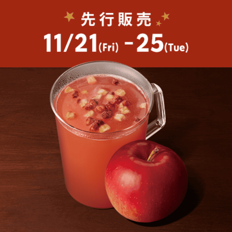 『ホット アップル サイダー』は、スターバックス® リワード会員限定で11月21日(金)〜25日(火)の期間、先行販売を実施!