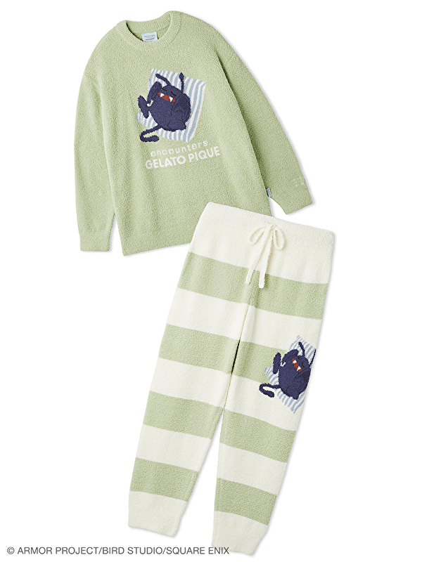 モンスターたちがすやすやと眠る姿をジャガードで表現した、ニット素材のルームウェアシリーズ。レディース・メンズ・ユニセックスまで豊富なサイズ展開で、家族みんなで楽しめます。袖や背中まで細かくデザインされたディテールは、ドラクエファン必見!