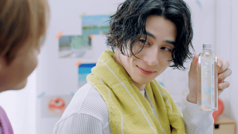 今回のCMは、INIメンバーが共同生活を送る空間が舞台。お風呂上がりの洗面台やリビングでの何気ない時間を切り取った、自然体なシーンが印象的です。