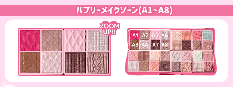 ピンク×ハートのデザインも相まって、40年分の“かわいい!”をぎゅっと閉じ込めた特別なアイパレットです♡