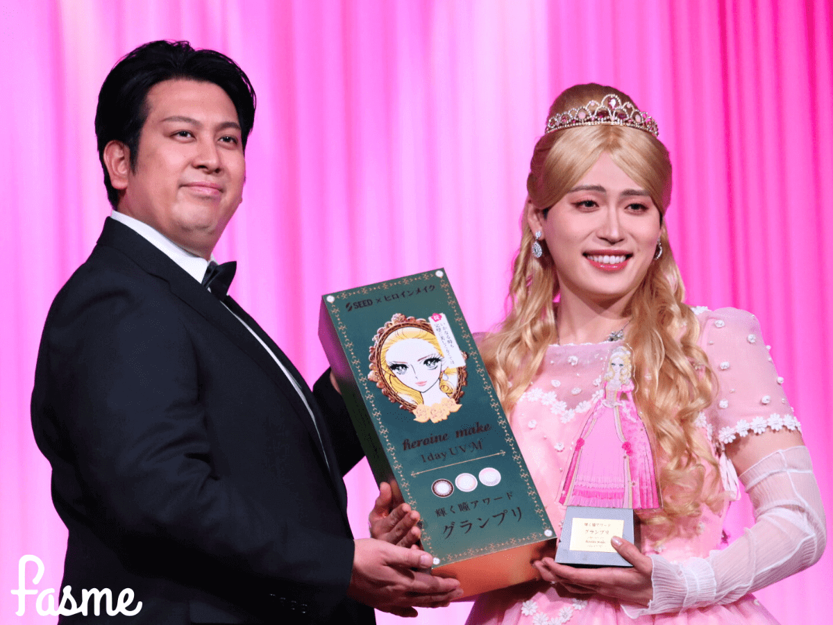 そして、まさかの受賞者として登場したのが池田直人さん♡フルヒロインメイクで、ヒロインメイクの"エリザベス姫子"のようなスタイリングで登場からすでに主役オーラ全開!