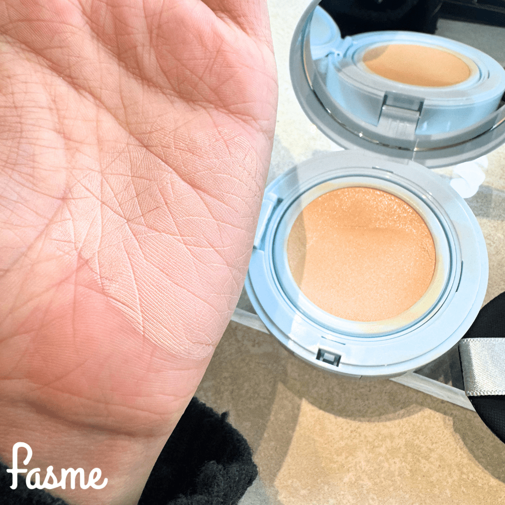 肌にのせた瞬間からなじみが良く、ふんわり軽いのにカバー力もある使用感。