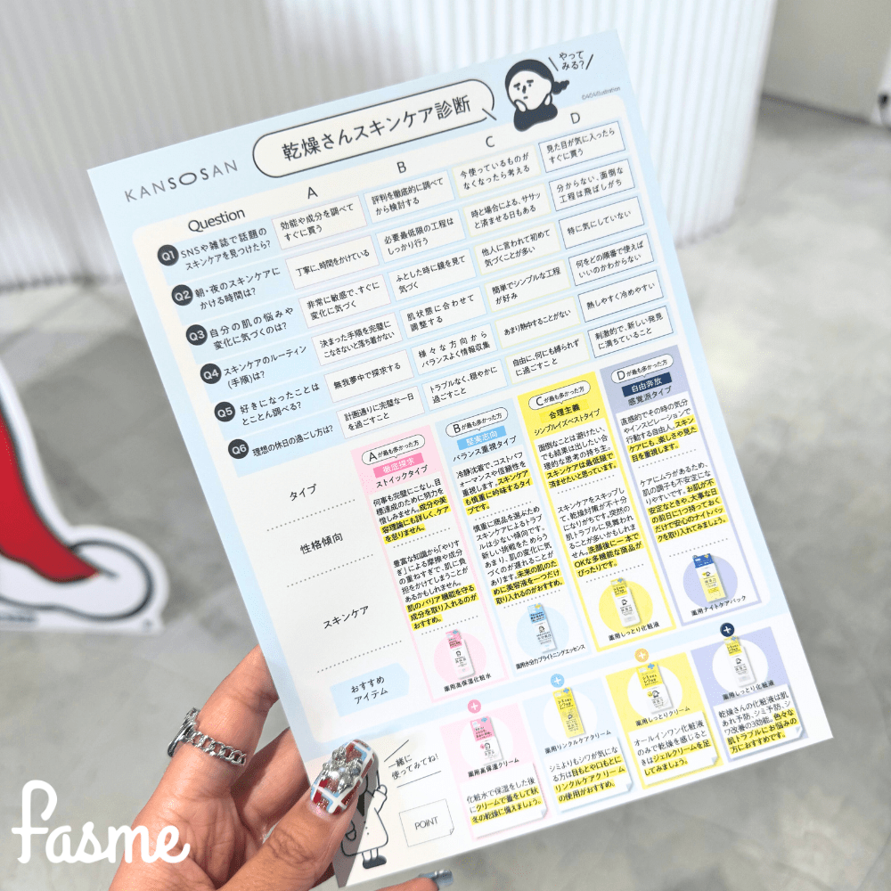 イベントには、自分に合ったアイテムがわかる「乾燥さんスキンケア診断」も。