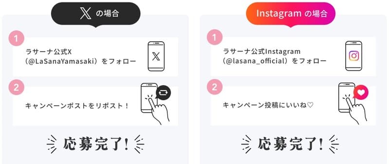 ラサーナ公式Instagram、または公式Xからエントリー。詳細は各SNSにてチェック!