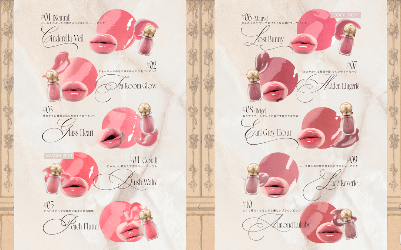 09・10は、イメージコンサルタントEmily監修の特別カラーになっており、自分に似合う1本を選ぶのも楽しみに♡