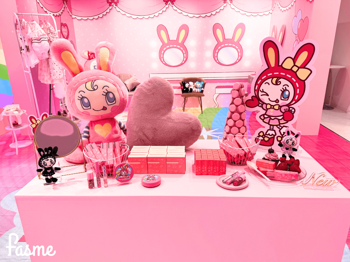 リボンやスイーツ、ピンクモチーフがいっぱいでコラボコスメも表現した世界観になっています♪