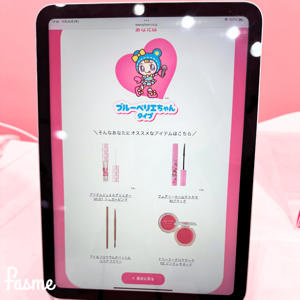 簡単な質問に答えていくと、自分のタイプとおすすめのアイテムがわかったよ♡