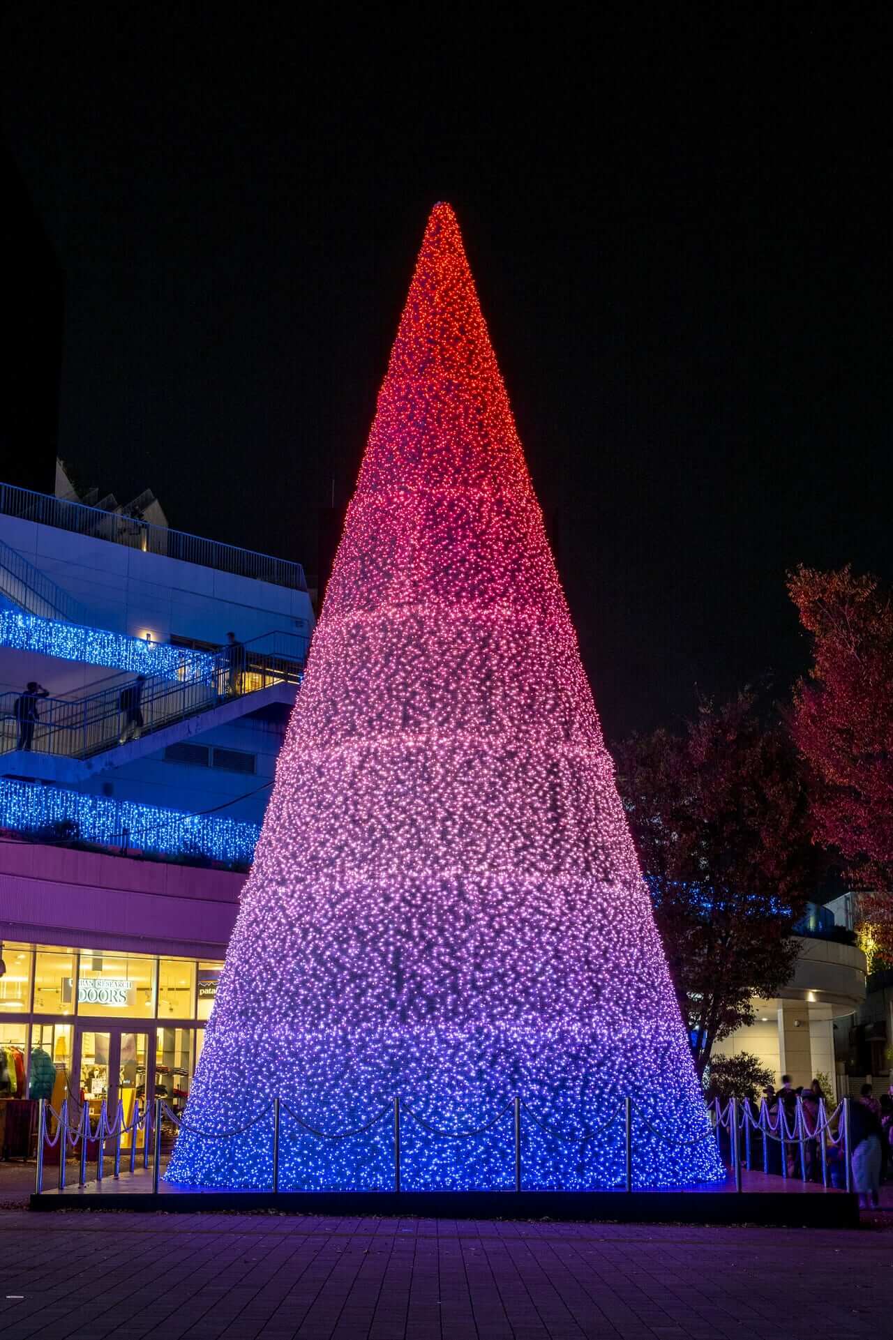 テラスモール湘南が贈る今年のイルミネーションは、「7DAYS SPARKLE BLUE」がテーマ。湘南の風景を思わせる7つの異なる“あお”が、曜日ごとにツリーを彩ります。