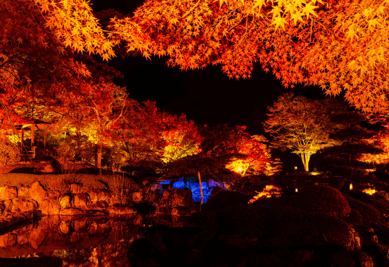 秋の夜を彩る紅葉ライトアップは、昼とは違う幻想的な美しさが楽しめる特別な季節イベント。