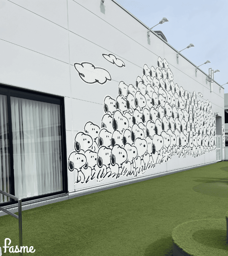3階には、スヌーピーの“従兄弟たち”が描かれた壁面アートが!