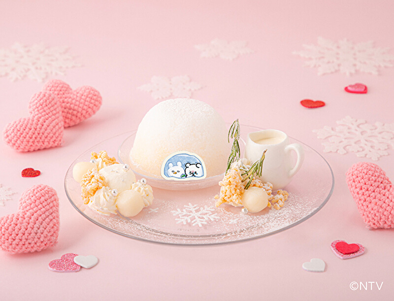 雪のかまくらでぴょんちーを想うすもっぴを表現した、切なかわいいムース入りかき氷♡