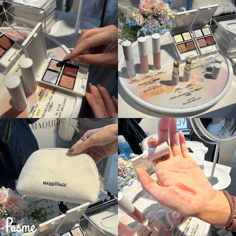 特に印象的だったのが、アイシャドウのタッチアップ体験。ビューティーアドバイザーさんが、パーソナルカラーに合わせて似合う色味や塗り方のコツを丁寧に教えてくれて、目元の印象がぐっと華やかに。“いつものメイク”を少しだけ変えるだけで、こんなに気分が上がるなんて…と、小さな発見がたくさん。