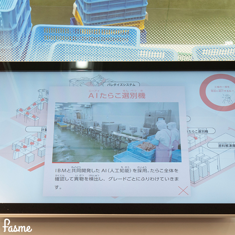 ちなみに、工場見学エリアでは撮影した自分の顔が明太子になってコンベアに流れていく!?というユニークな演出も♡