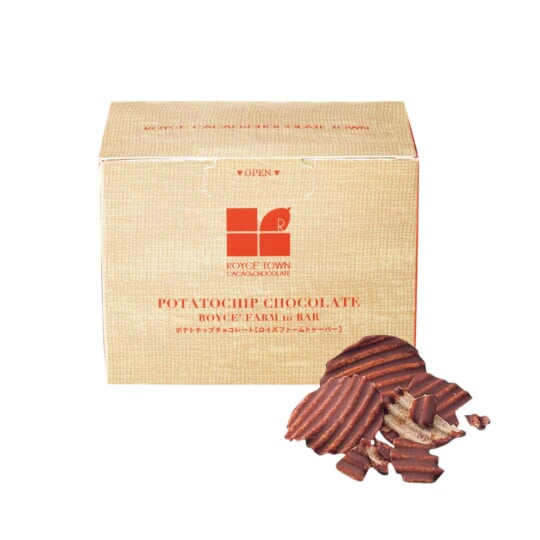 มันฝรั่งทอดกรอบๆ เคลือบด้วยช็อกโกแลตสูตรพิเศษของ ROYCE ที่ด้านหนึ่ง