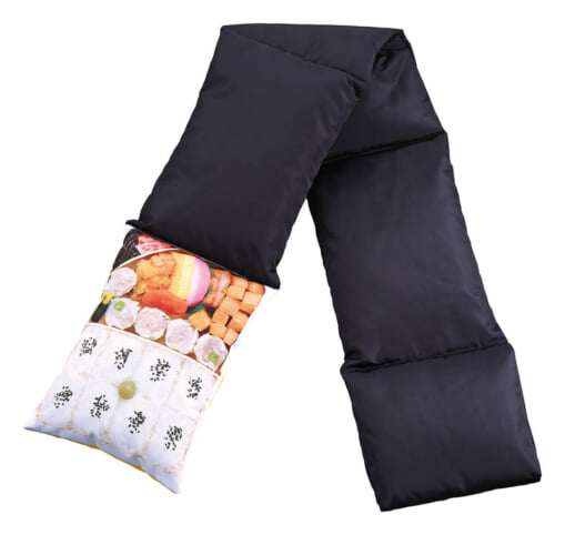 还有一款非常适合秋冬的周边是烧卖便当羽绒围巾,设计灵感来源于真实便当!